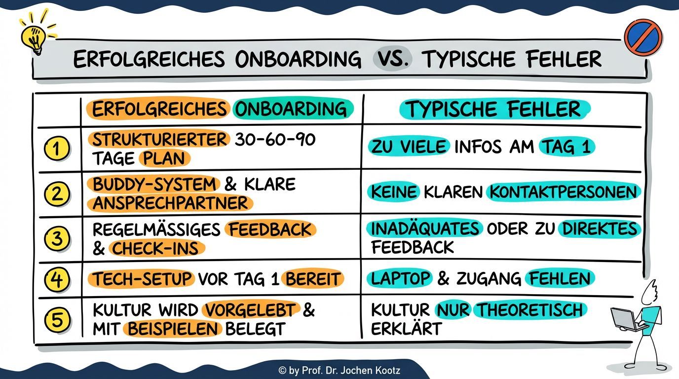 Ein hoher Person-Organization-Fit ist der beste Schutz vor dem Shift Shock. Wenn die Werte und die Kultur des Unternehmens bereits im Bewerbungsprozess transparent kommuniziert werden, können Bewerbende realistisch einschätzen, ob sie zum Unternehmen passen. Ein gezieltes kulturelles Onboarding ist der Schlüssel, um den P-O Fit nach der Einstellung zu stärken. Es geht nicht nur darum, fachliche Fähigkeiten zu vermitteln, sondern vor allem darum, die neuen Mitarbeitenden in die Unternehmenskultur zu integrieren:
